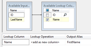 To accomplish this we will load the excel file into a cache connection manager and use this in the data flow. Below is my SQL Table with first names and my excel file with last names. They both have matching ID columns. I will match up the id in the lookup transform to combine the names.