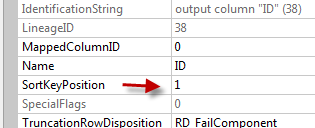To do this right click on the sources and open the advanced editor. Click on the Input/Output Properties tab and click on the OLEDB Source output. Then change the IsSorted property to True on the output. Click the plus next to the OLEDB Source output and select the ID column and change the SortKeyPosition to 1.