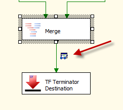 I added a data viewer between the merge and the terminator destination by righting clicking on the green data flow line and selecting data viewer.