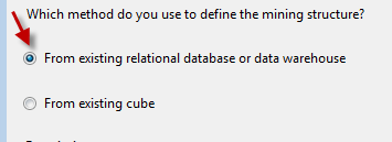 The first step is to create a mining structure. You can think of the mining structure as the blue print for the data mining models that are going to be created on the mining structures.