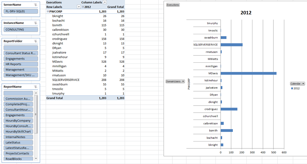 PowerPivot is a powerful new tool from Microsoft that has been improved even more in the 2012 release, which you can download for free here. In this blog I will give you a PowerPivot workbook that I created to connect to the Reporting Services logs and pull data. This gives you the ability to see the performance of your report server very easily.