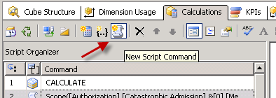 This member needs to keep the measure at its original value. To accomplish this I place an “If Then” statement around the “This” part of the scope statement. If you are doing this in Analysis Services in the calculation tab, you will click the new script command button and enter the scope statement from above.