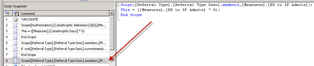 After you create the Scope statement you can save and close the cube and the script will be broken into three different sections in the script organizer as seen below.