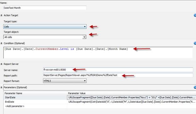 Reporting Actions in Analysis Services allows you to open a report in Reporting Services. Most of the time users want to pass in some parameters to the report so it shows the relevant data. If the parameter name matches the item in excel then this is a breeze. The problem comes when you need to pass something different to the report. If the report has a date range on it you need to pass the report a start date and end date. If a user clicks on a reporting action in excel at the year, quarter, or month level, you will need to get the start date and end date dynamically. Let’s see how to do that.